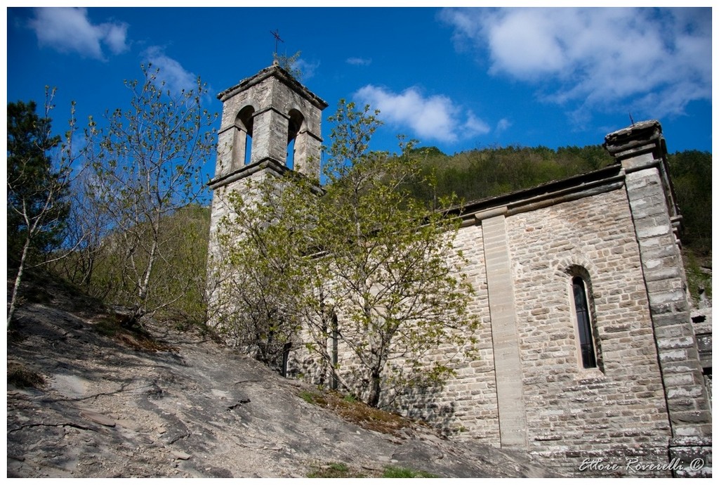 A 616 mt slm è un borgo suggestivo e abbandonato nel versante romagnolo, alla radice della valle del Bidente. A raccontare la storia di questo antico borgo rimangono la chiesa, la canonica, il piccolo cimitero, un ponte e all’intorno case coloniche in rovina. Ci sono anche altri poderi circostanti che un tempo formavano la popolosa frazione (200 abitanti), completamente abbandonata negli anni Settanta del Novecento.