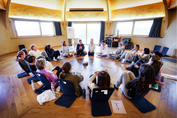 Certo! Ad Autosufficienza è possibile organizzare corsi e retreat nelle nostre sale immerse nella natura: la Sala Geodetica e la Sala Ottagonale.