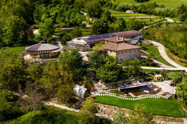 Le strutture sono realizzate in bioarchitettura, con materiali naturali e a basso impatto ambientale; energia, acqua calda e cibo vengono autoprodotti, mentre i campi, un tempo abbandonati, sono oggi un eden di vita e biodiversità.