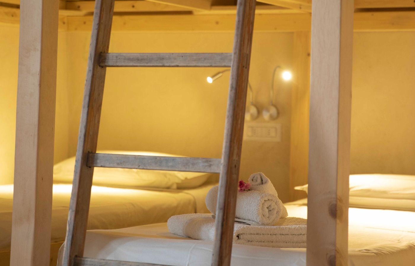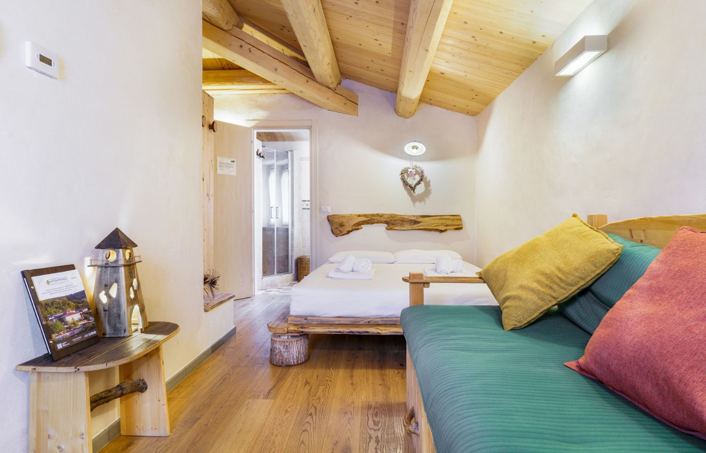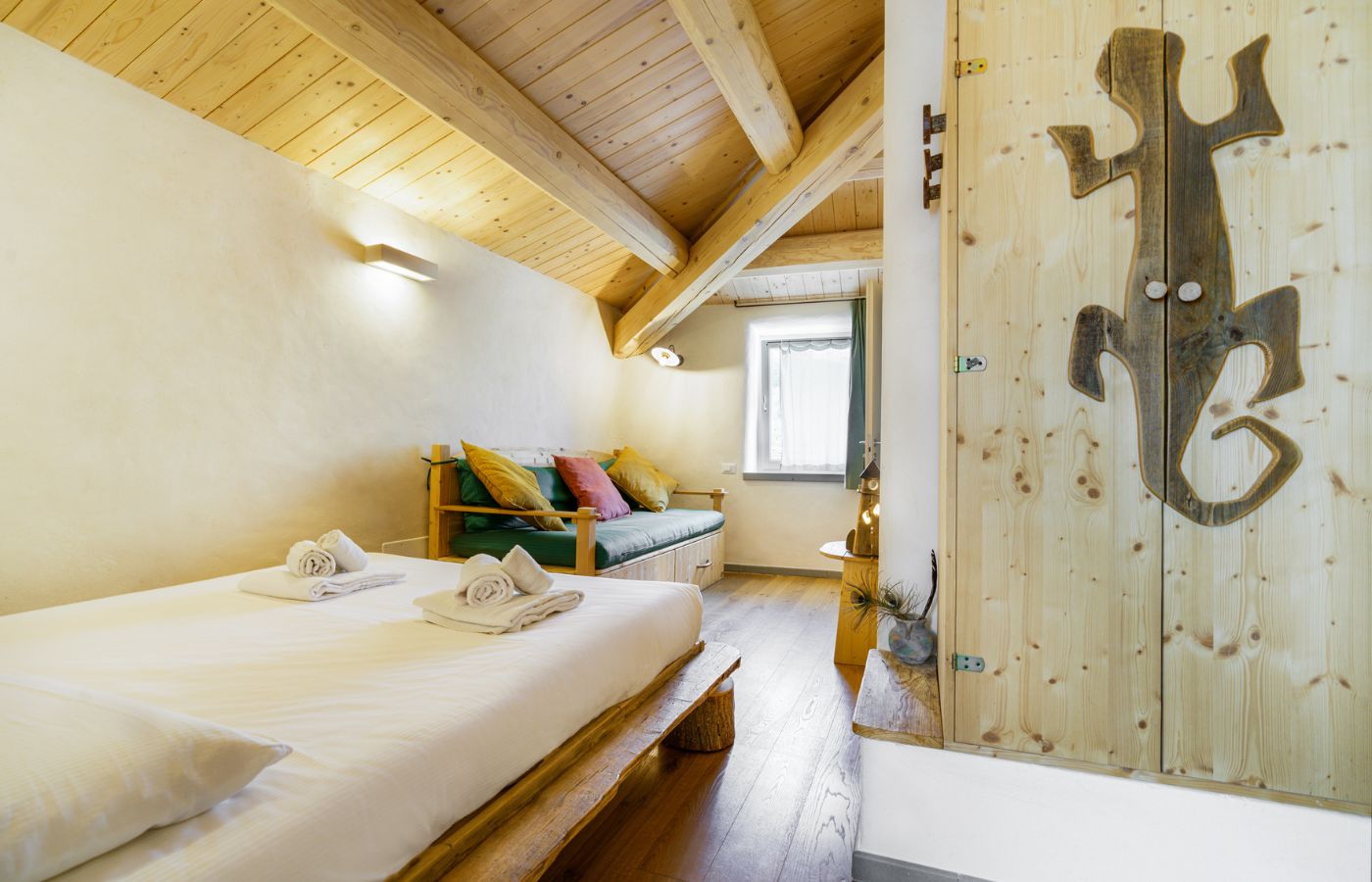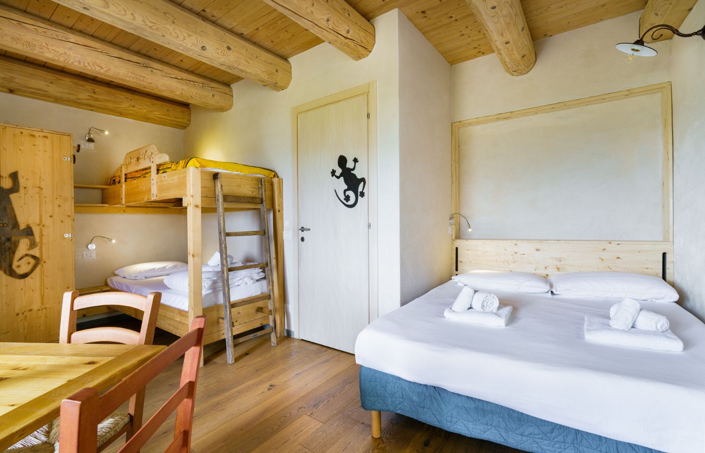 Il monolocale Bosco dispone di un letto matrimoniale non divisibile e 2 letti a castello (comprensivi di due letti ciascuno).