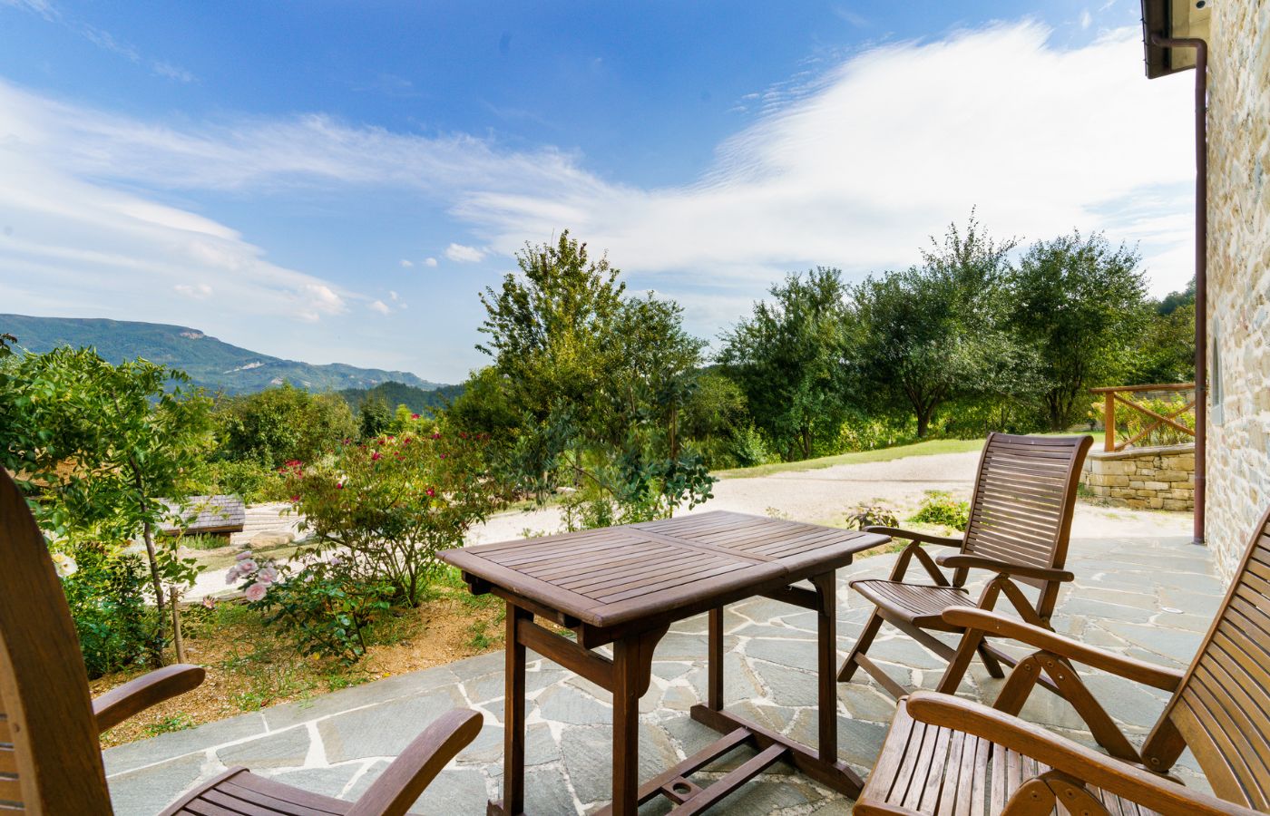La camera Monte Comero si trova al primo piano della struttura principale con accesso dalla scala interna. Lo stile è quello di tutto l’edificio, caratterizzato da muri intonacati in calce-canapa, soffitto con travi in legno a vista, pavimento e mobili in legno naturale. Dispone di vista spettacolare sulla valle e sul Monte Comero.
