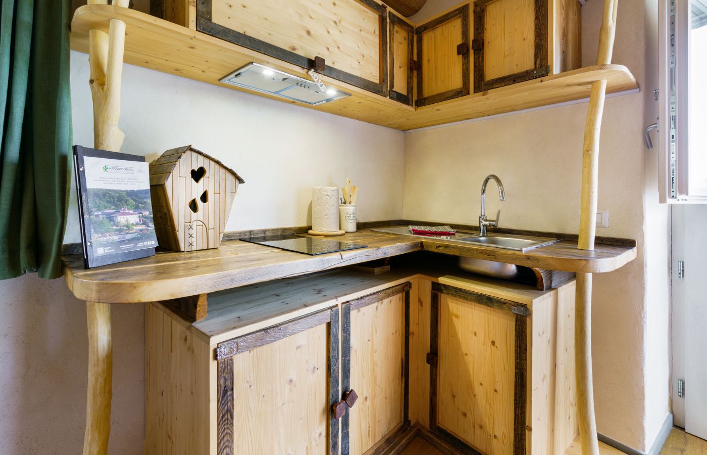La Casetta Breta, ampia 15 mq e realizzata in legno di conifere naturale, è la soluzione ideale per chiunque voglia staccare dalla frenesia quotidiana, lasciarsi coccolare dai profumi e dal silenzio della natura. I mobili in legno sono trattati con oli naturali, creati a mano nella nostra falegnameria.
