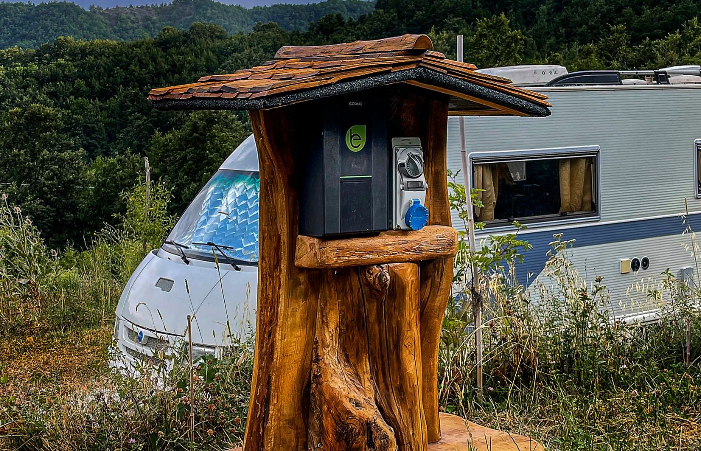 Uno spazio da vivere con il tuo camper o la tua roulotte, in armonia con il paesaggio che ti accoglie.