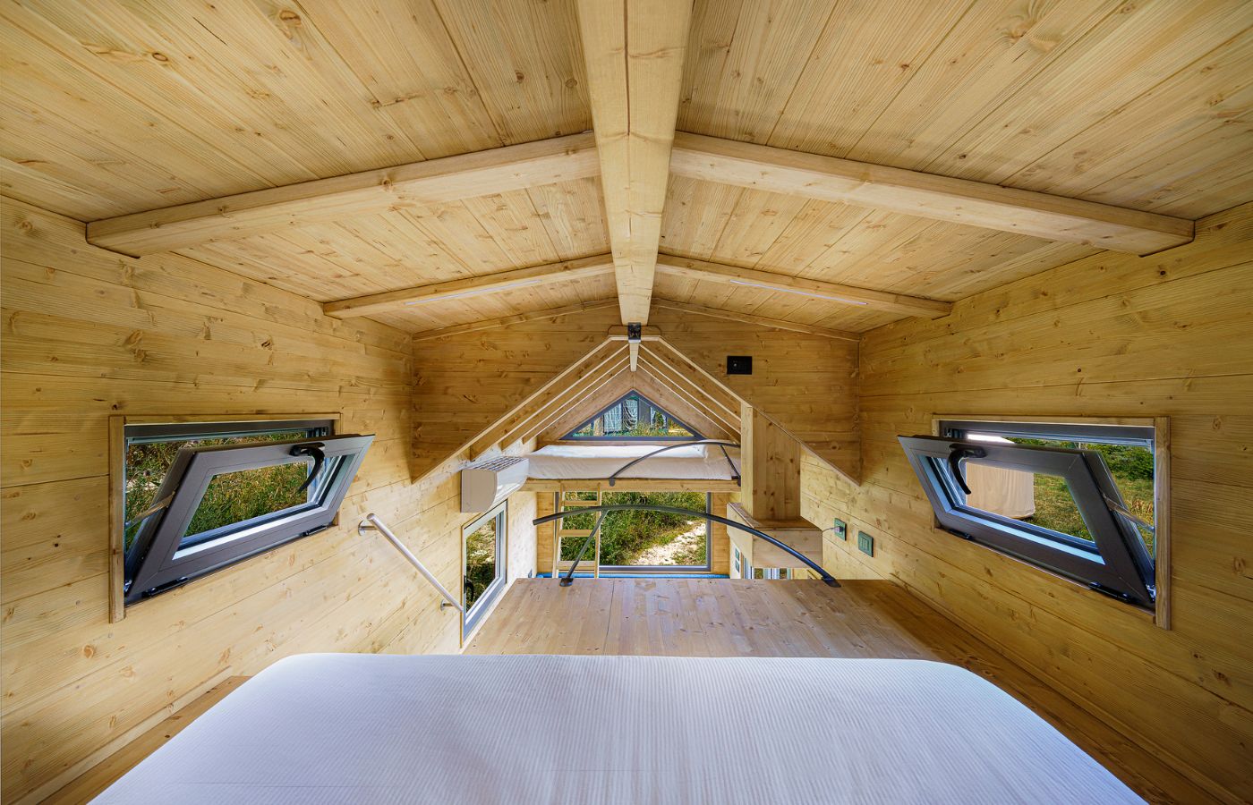 La Tiny house Gloria dispone di un letto matrimoniale non divisibile e un letto a una piazza e mezzo non divisibile.