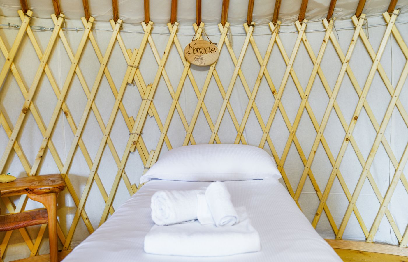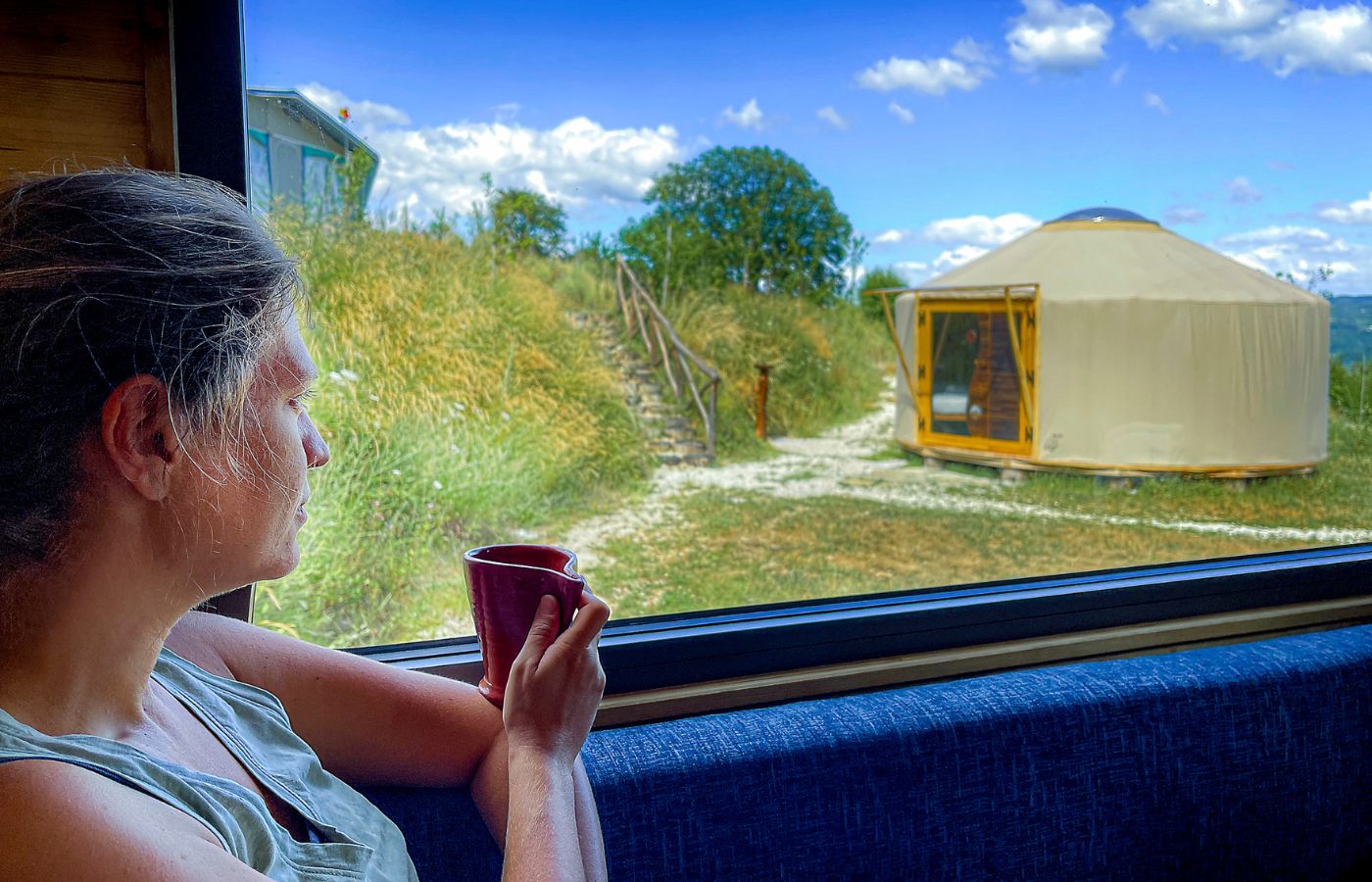 Il bagno non è all’interno della yurta ed è disponibile nella struttura centrale dell’agricampeggio.