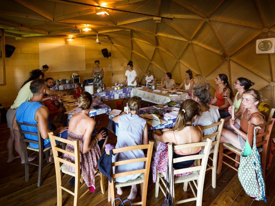 Tutte le strutture sono realizzate in bioarchitettura con materiali naturali e a basso impatto ambientale. L’energia, l’acqua calda e il cibo sono autoprodotti e i campi, un tempo abbondanti, sono stati trasformati in un eden di biodiversità e vitalità.