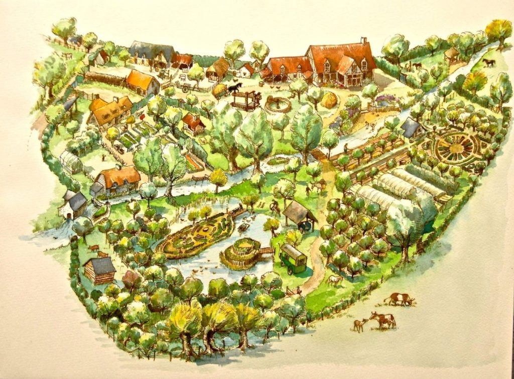 Iniziano quindi a progettare in permacultura: creano bancali rialzati in cui coltivare gli ortaggi, un orto sinergico a forma di Mandala, terrazzamenti, una forest garden e addirittura riescono a rifertilizzare la parte occidentale della fattoria, caratterizzata da un suolo povero e roccioso, dando vita a una rete di piccoli laghetti e a due isole, anch’esse convertite presto in orti. Gli autori imparano che in permacultura gli scarti di un’attività diventano una preziosa risorsa per un’altra e anche le cosiddette “erbacce” non vengono più viste come tali (Charles a un certo punto si rifiuta di chiamarle così), ma come piante pioniere, anch’esse con una loro funzione, come per esempio l’ortica, che con il suo alto contenuto di azoto e minerali, diventa un eccellente pacciamatura per i bancali.